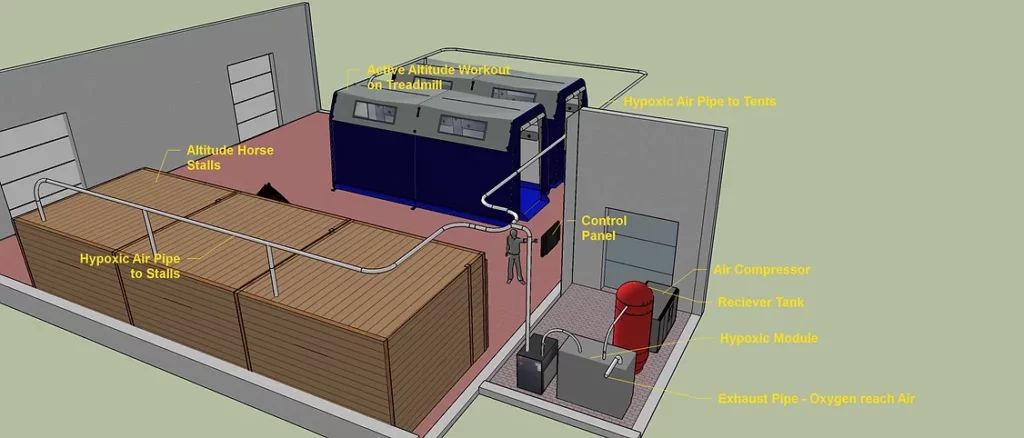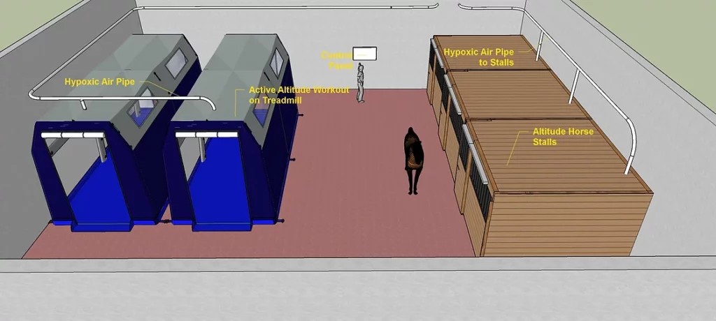 Hypoxie Équine, Performance Cheval, Altitude Training, Préparation Sportive, Récupération Écurie, Technologie Vétérinaire.